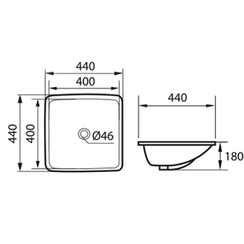 Under Counter Basin Inner Diameter SIZE :400mm X400 mmX180mm Outer Diameter SIZE :440mm X440 mmX 180mm