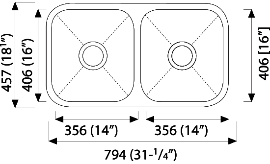 Thickness: 1.2mmOverall: L794mm x W457mmDepth: 230mm (L) / 230mm (R)Material: 304 Stainless SteelFinishing: Satin